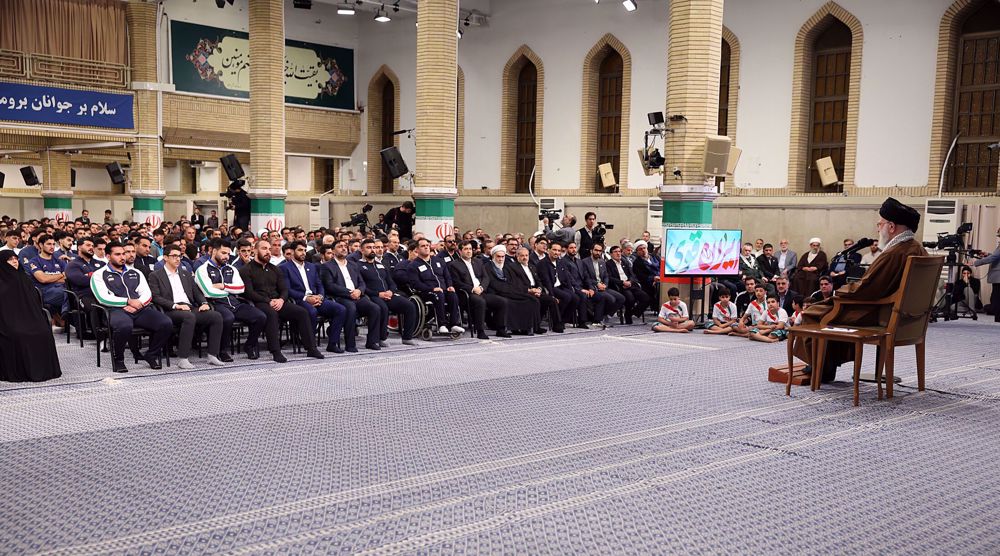 En imágenes: El líder de la Revolución Islámica, el Ayatullah Seyyed Ali Jamenei, recibió a los medallistas de las competiciones deportivas y a los ganadores de las olimpíadas científicas el lunes 20 de octubre de 2025. © khamenei.ir y © leader.ir